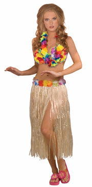 Adults Hawaiian Hula Dancer Costume Accessory Kit Features colorful flower lei, skit with flowers and bra One size fits most...