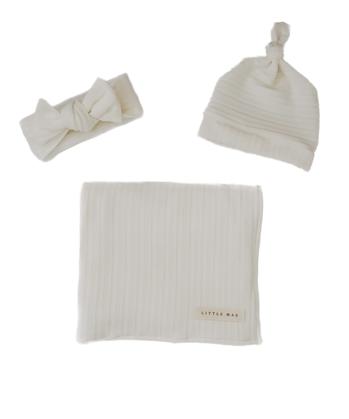 Cloud Knit Pointelle Stretch Swaddle - Swaddle + Bow Headwrap 0-6M