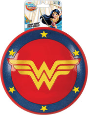 DC Comics Wonder Woman Shield Costume Prop Accessory Feature red shield with blue accents, yellow stars, and Wonder Woman logo...