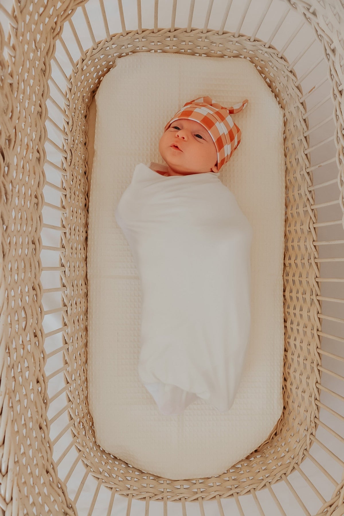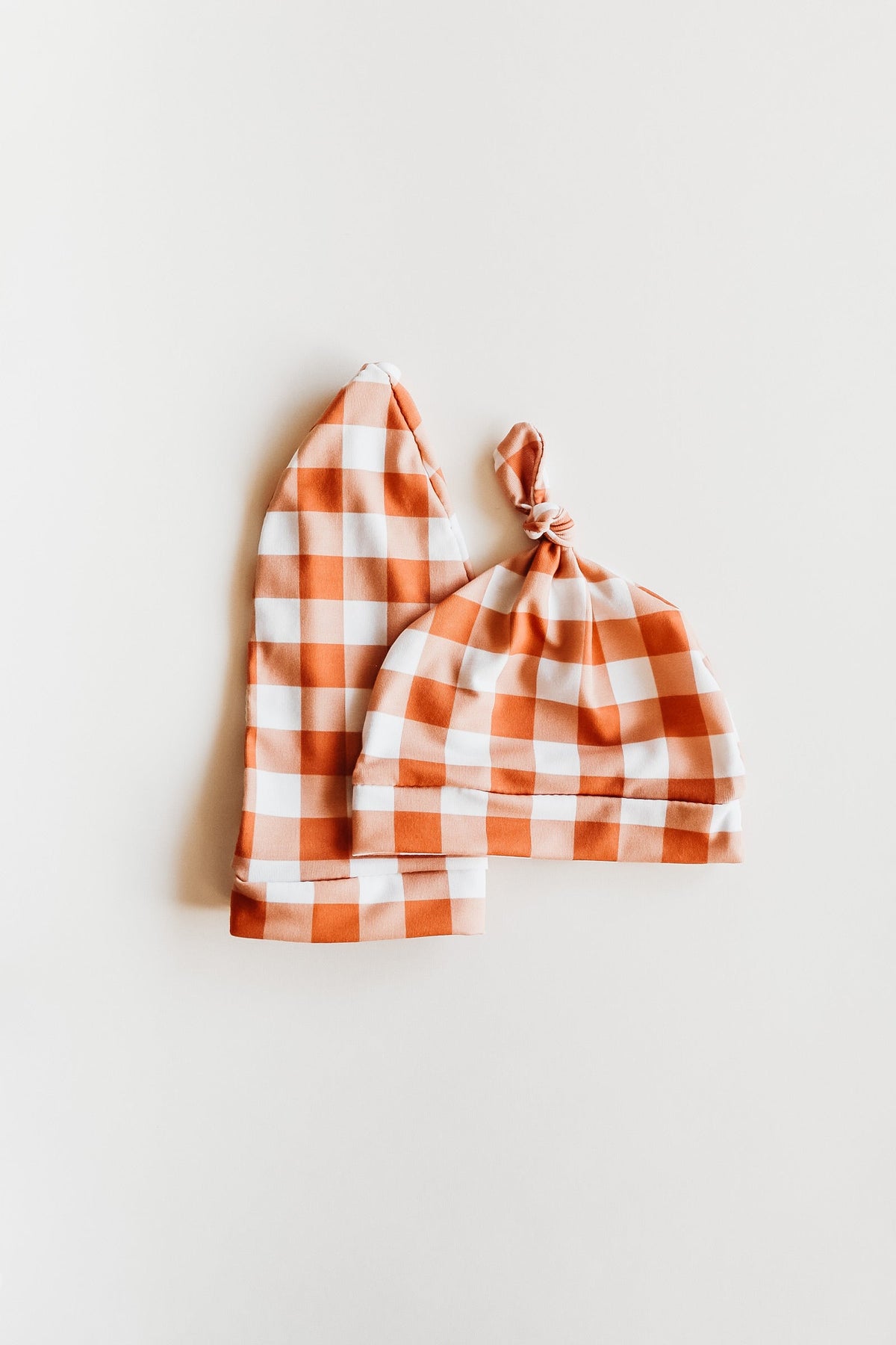 Our Gingham Knotted Hat is perfect for your little one. From the moment they come into this world, comfort them with love, softness and a little stretch. Our knotted hat will keep them warm but not overheated from the first day. Stay in style with this staple piece for each and everyday use.