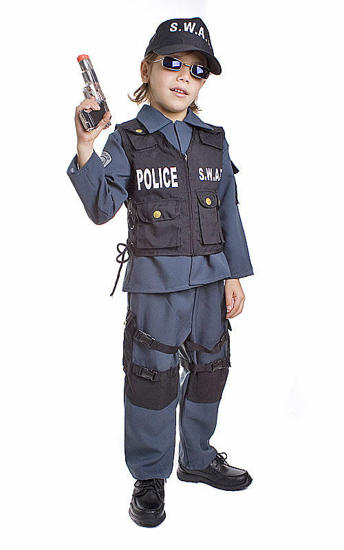 • Includes a S.W.A.T. vest, pants, shirt, and cap.