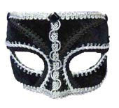 Masquerade Mask Black with Silver. Silver stitching highlights this pretty black eyemask.